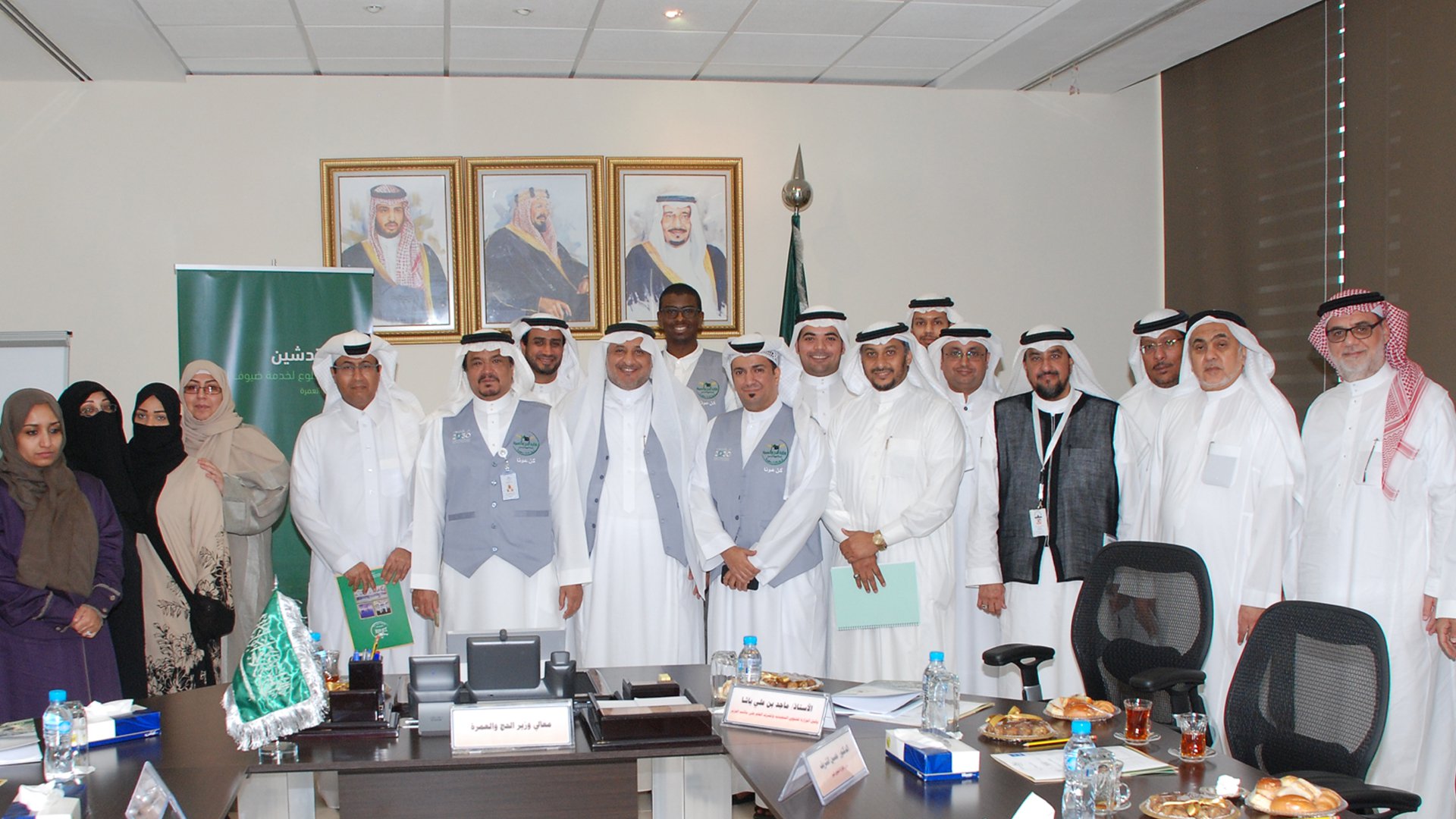 In the presence of His Excellency the Minister of Hajj and Umrah Dr. Mohammad Saleh Bin Taher Benten today hall meetings in the library ministry in Makkah, Business Volunteer of the Ministry of Hajj and Umrah to serve the pilgrims under the slogan (Be Helpful) and the managers of its branches and a number of advisors and leaders.